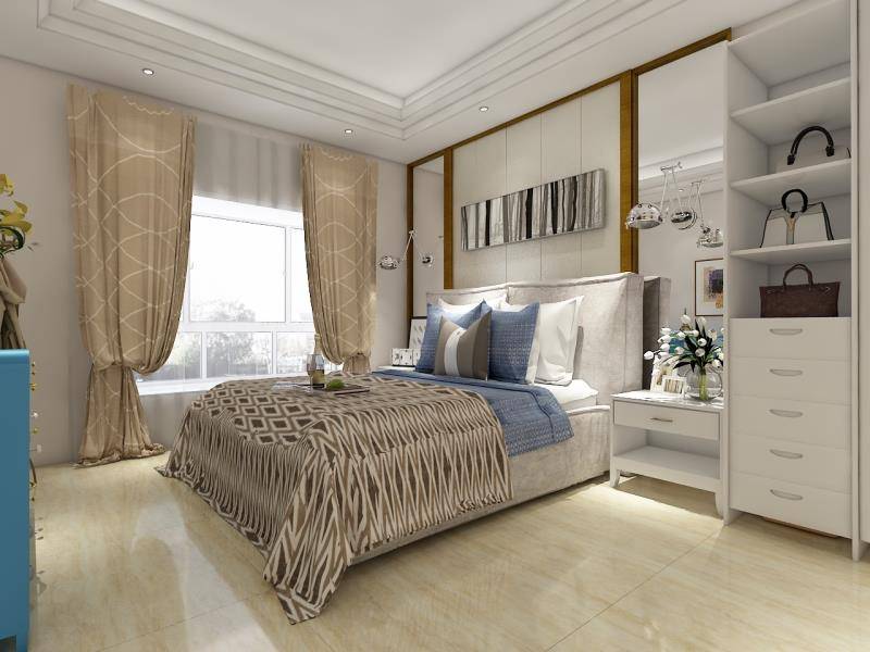 俗語說“金秋”顧名思義黃色是秋天的主色調(diào),就如本案。黃色的地板與黃色的窗簾相呼應(yīng),一絲絲涼意襲來,簡約卻不失時尚的天花、儲物柜,靜謐、純凈而自然,浮躁的心便不自覺地平靜下來。這,也許就是秋天的感覺。
