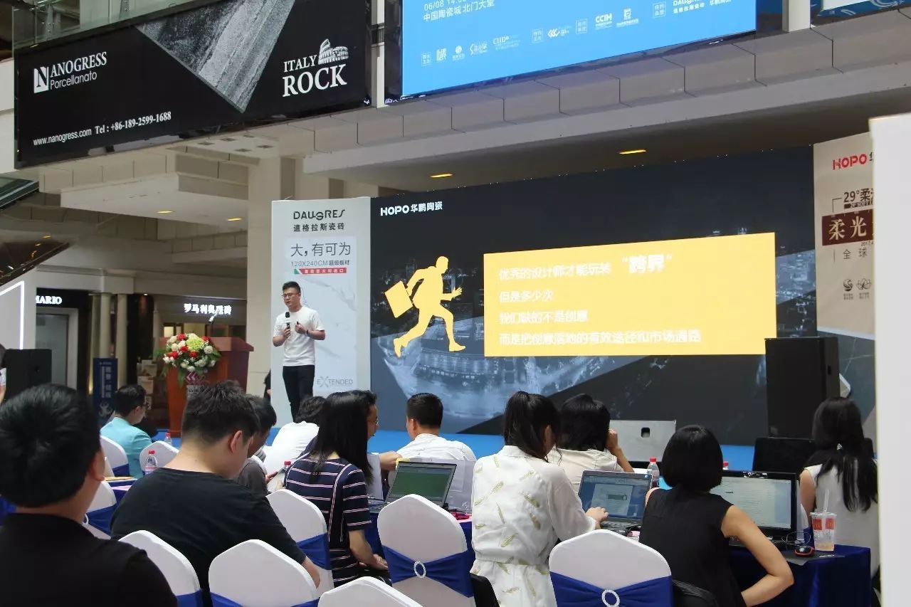 在這場傳統與現代重構新生的設計盛宴之中,作為 活動特約品牌的華鵬陶瓷 “為跨界設計發聲”,給在場數百名設計師、行業精英帶來了一場關于《創新設計跨界》的精彩演講!
