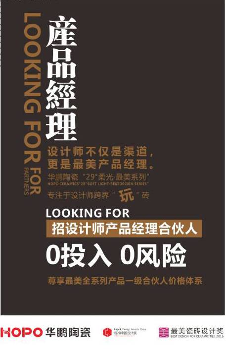 2016年華鵬陶瓷進一步打開“跨界設計”的大門,開創了 “設計師產品經理合伙人” 的全新跨界模式,得到了設計師的廣泛青睞與追捧!