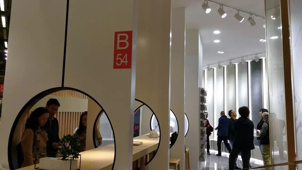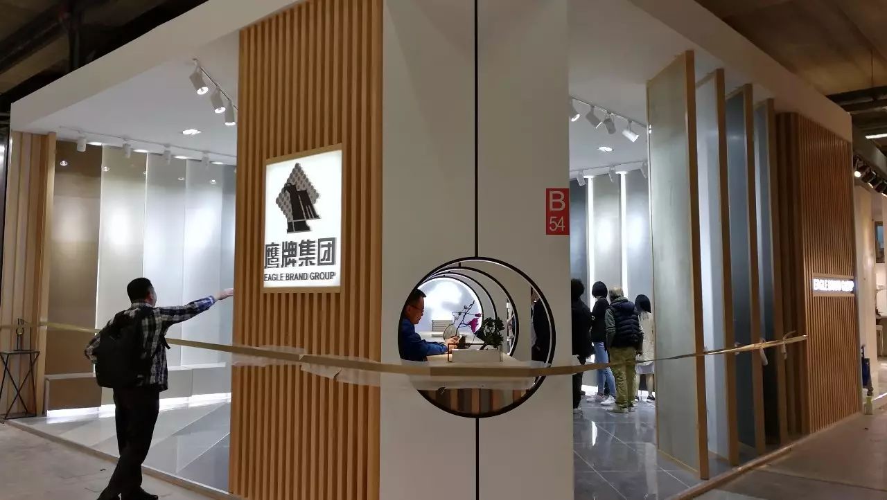 這是一種“大和諧”的色彩,這是一種“包容之美”。本屆鷹牌集團展位設計以獨特的視覺藝術“驚艷”呈現,突破常規設計手法,大膽采用“黑白灰”以外的色彩淺黃色作為主色調,和諧、耐人尋味且不失時尚張力;此外,設計師還沿用了“重復”的簡單構圖手法,整體效果顯得大氣而又極具簡約。吧臺隔墻輔以圓形的鏤空設計,與方形的主磚展示將中國的方圓藝術特點表現得淋漓盡致;一些極具特色的東方韻味飾品成為了窩心的點綴,細節處理恰到好處,與主色調相襯形成獨樹一幟的“新中式”風格。