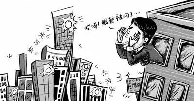 除了這些主動刺激,生活中有太多令人猝不及防的光污染,例如:城市建筑物的玻璃幕墻等裝飾反射光線,明晃白亮、眩眼奪目。