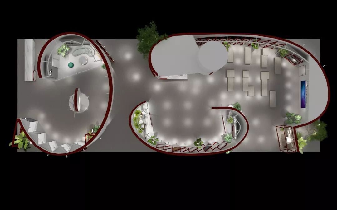 >>>本次展館,華鵬以“柔”為設(shè)計(jì)主旨,從品牌理念出發(fā),結(jié)合華鵬主題紅色,弧形結(jié)構(gòu)將空間很好的劃分為三大展區(qū),看似錯(cuò)亂的空間布局中,存在著許多創(chuàng)意妙想,每一個(gè)弧形的結(jié)構(gòu)更好地銜接著每個(gè)展區(qū),其產(chǎn)生的視覺錯(cuò)位,如夢(mèng)如幻。