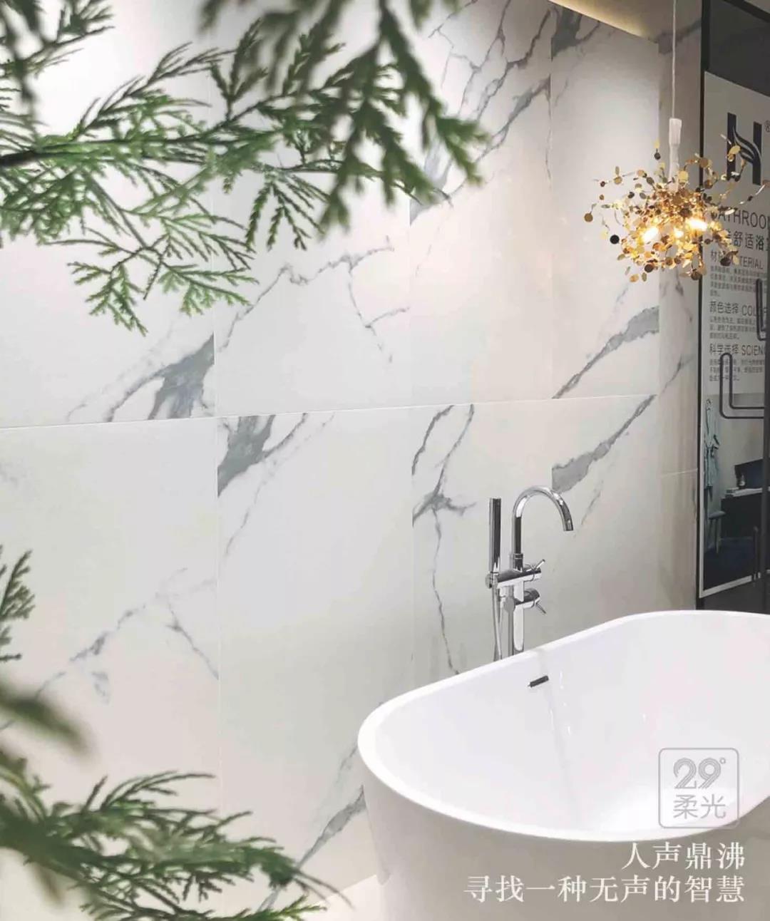 華鵬陶瓷聯手國內一流設計團隊打造2500平方總部展廳,500多款產品展示,其中1200平方柔光館為核心產品29°柔光磚展示區。