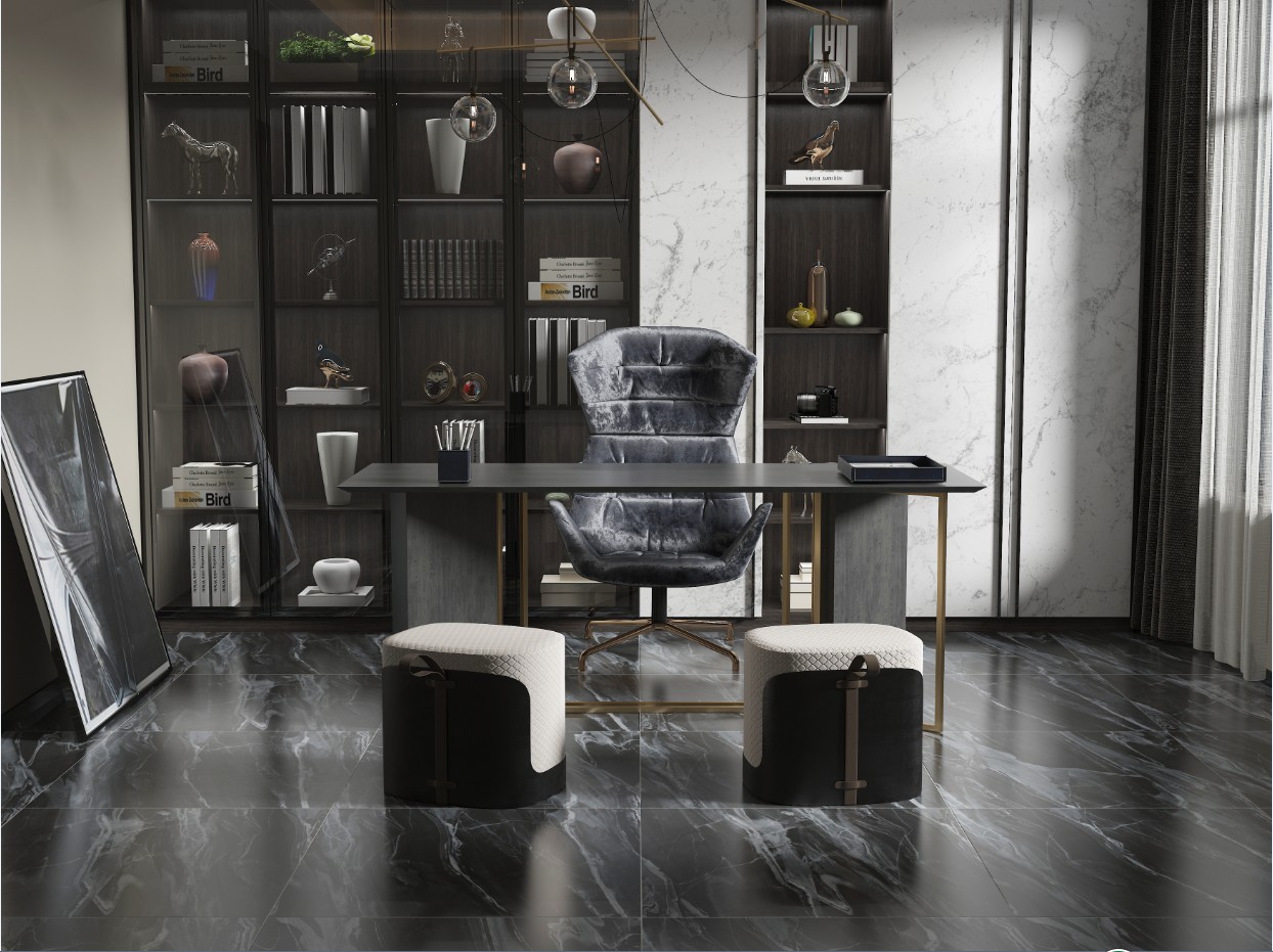 黑夜里的大海更顯深邃,在皎潔的月色下咆哮出白浪滾滾,把沙灘與巖石拍打成或深或淺的溝壑縱橫。波斯海浪黑以夜海的磅礴為靈感,把大自然的瑰奇壯麗定格為瓷磚獨特的肌理與色彩,同時采用先進的意大利多重柔拋工藝打造出細膩、柔和的質感,質感的細膩柔和與紋理的張揚澎湃形成強烈的視覺沖擊,帶來獨特的裝飾效果。