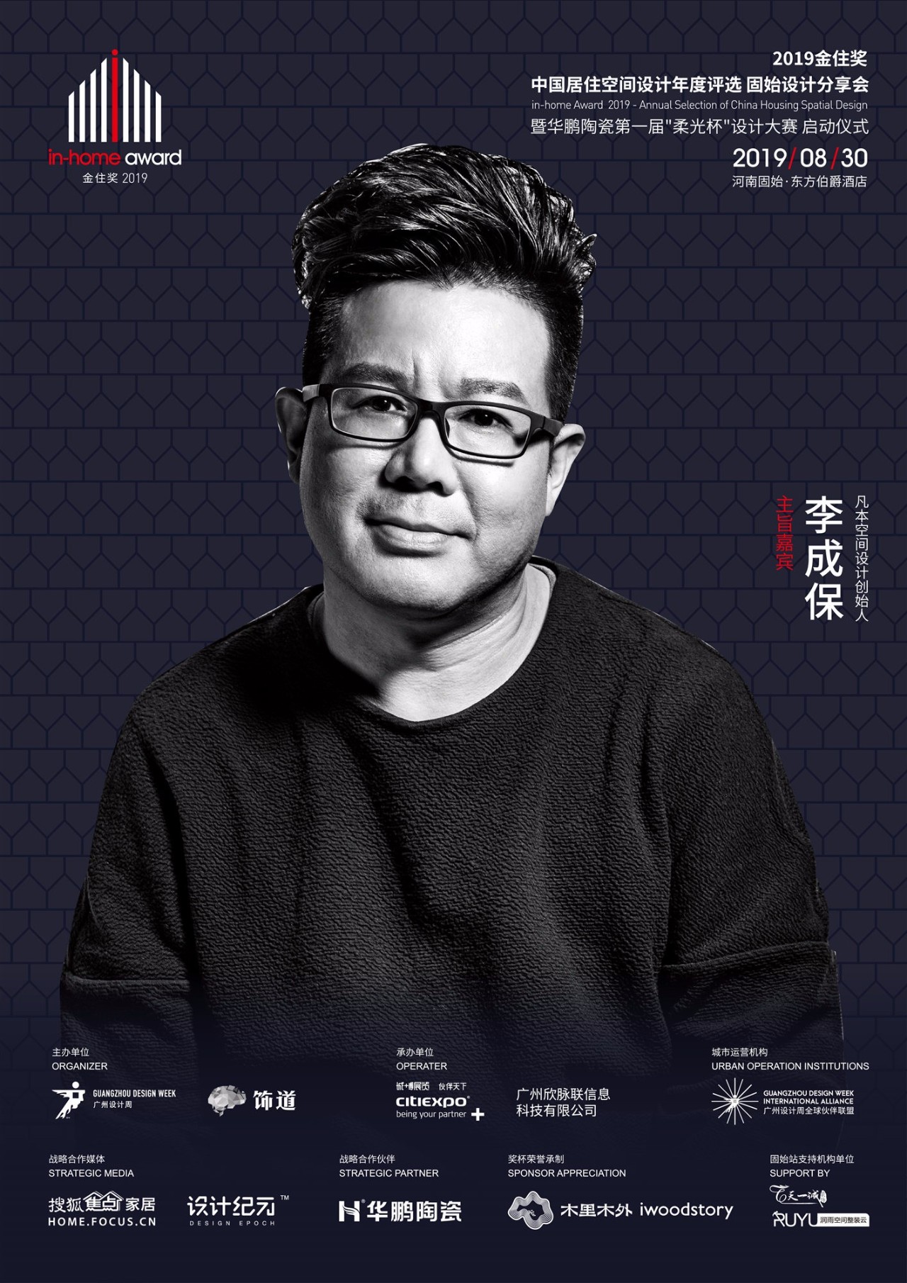 就在明天,8月30日,廣州設計周x飾道x華鵬陶瓷,“2019金住獎-中國居住空間設計年度評選”,將臨河南固始縣,特邀李成保、吳利民先生,于“中原第一僑鄉”,與當地逾百位設計精英、各界企業家及媒體共聚,一同探討設計新風尚。