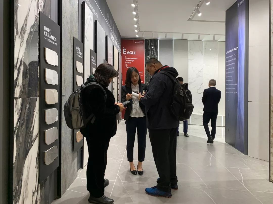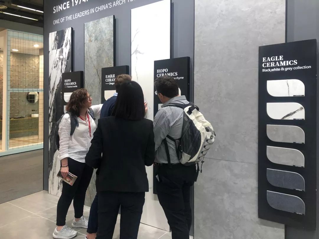 華鵬陶瓷吸引了眾多國際客商關注,米蘭3家知名設計機構更是到訪華鵬展位,一起探討2019年博洛尼亞展展會趨勢。華鵬柔光產品引發設計師關于柔光產品趨勢大討論,預測高端柔光產品會成為未來瓷磚的趨勢與風向標。