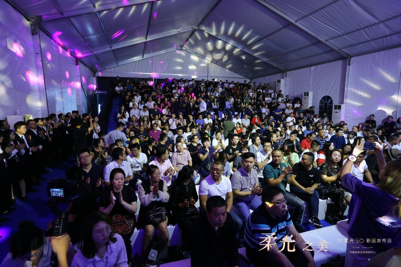 10月17日,華鵬陶瓷29°柔光5.0奢石系列終于正式發布,驚艷陶界。廣東鷹牌陶瓷集團總裁林偉,廣東鷹牌陶瓷集團副總裁陳賢偉,行業協會領導及媒體朋友、華鵬合作伙伴500多人出席了新品發布會,共同見證華鵬柔光新高度。