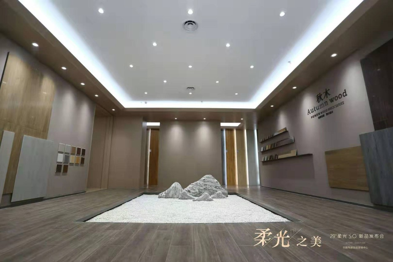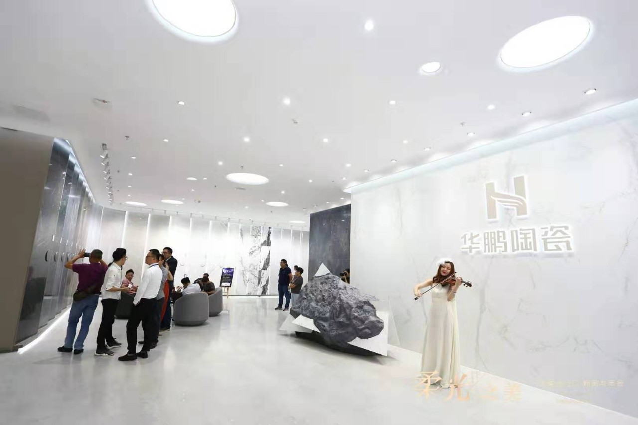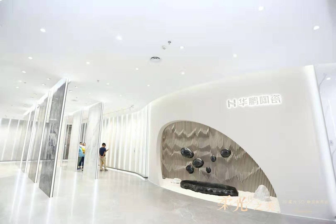 為承載柔光5.0新品,匹配華鵬品牌升級,2019年,華鵬陶瓷總部展廳也重裝新啟,于10月17日新品發布會同步對外開放。
