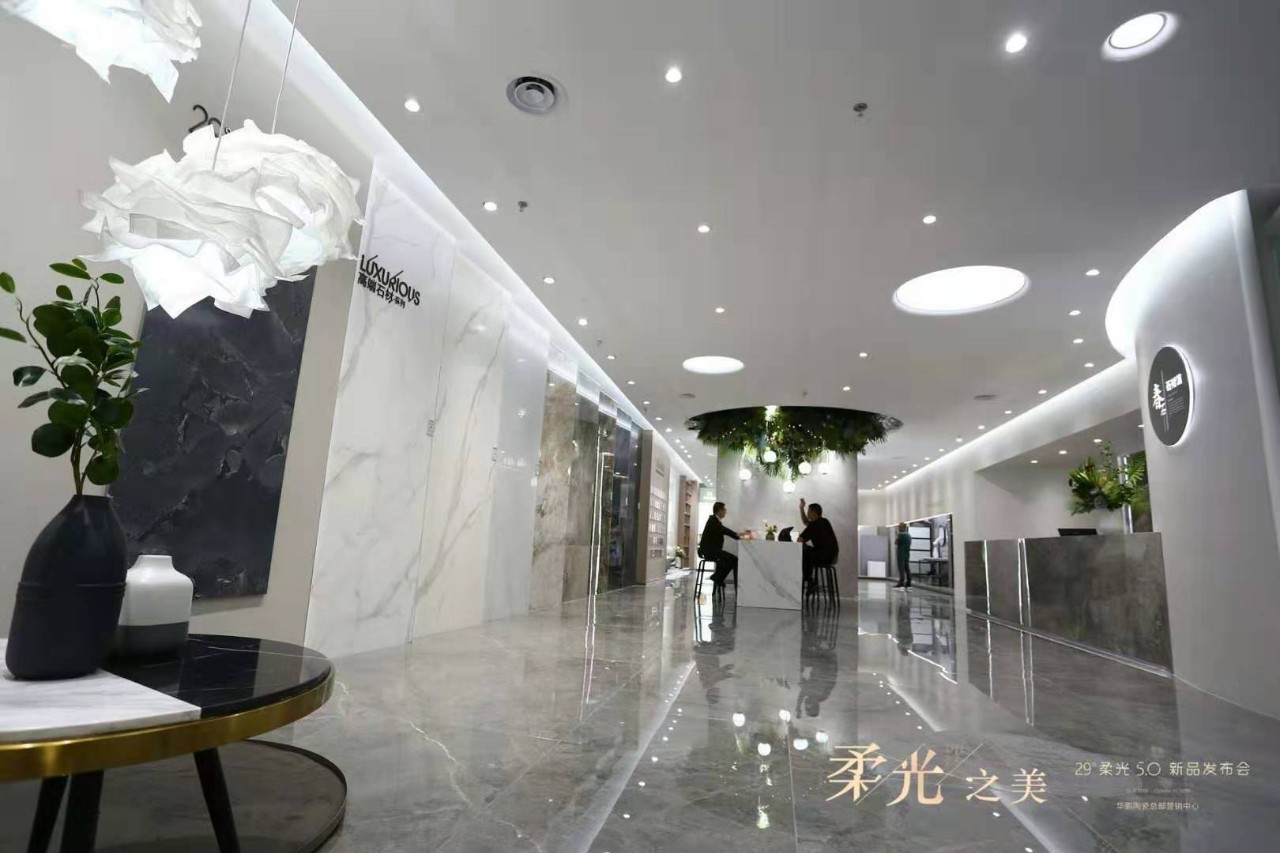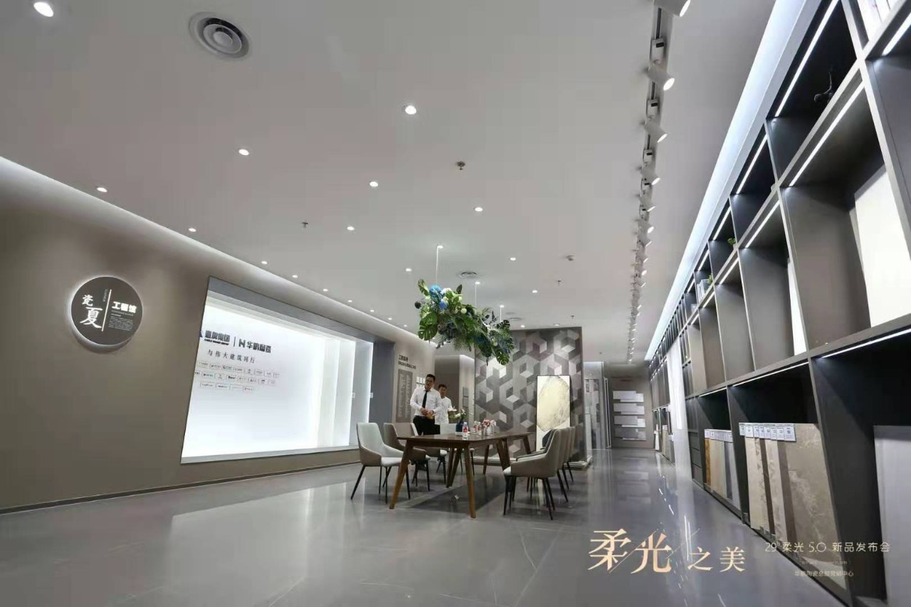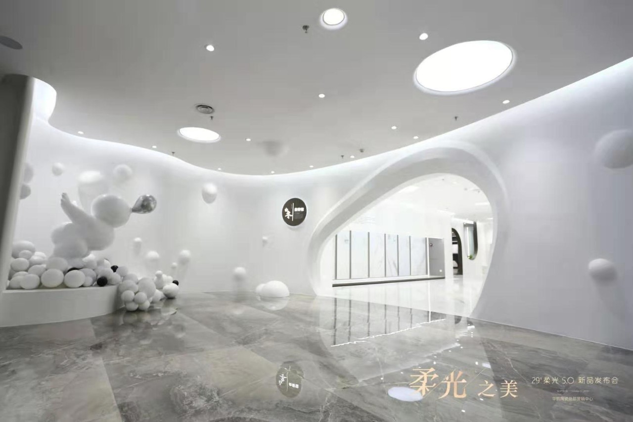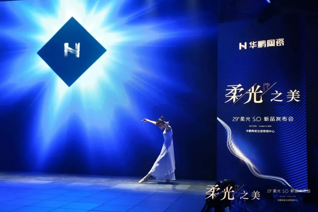 為承載柔光5.0新品,匹配華鵬品牌升級,2019年,華鵬陶瓷總部展廳也重裝新啟,于10月17日新品發布會同步對外開放。