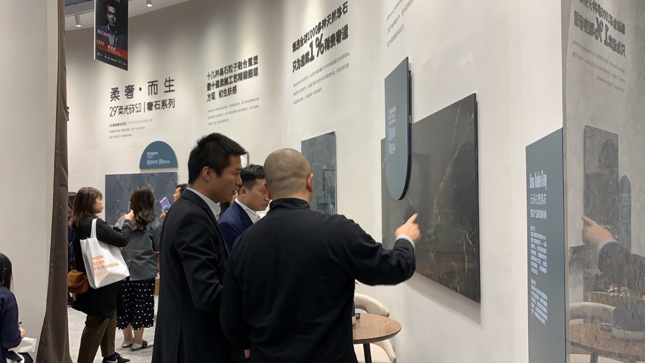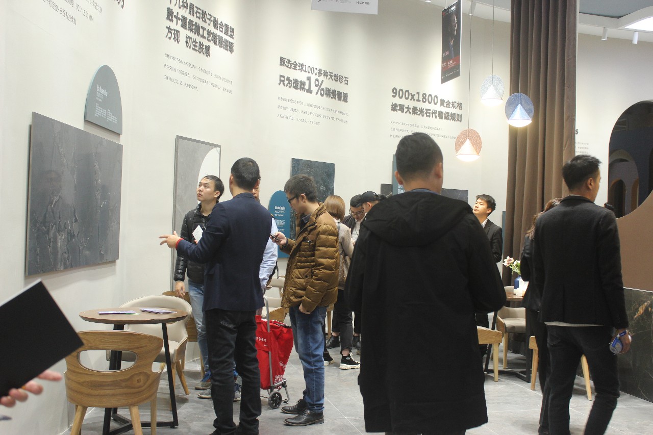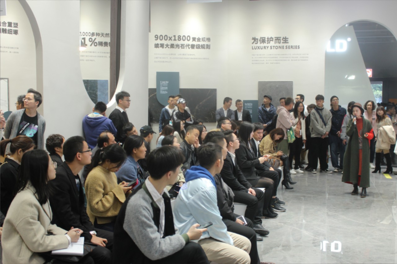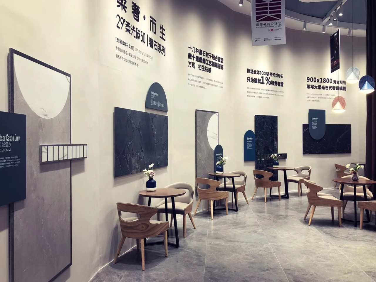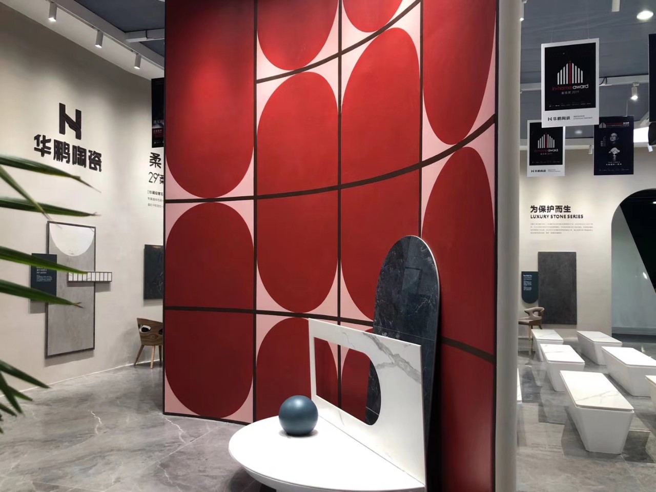 展位聚焦今年升級亮相的柔光5.0奢石系列新品,通過產品的絲滑觸感,柔和舒視的觀感,具象華鵬“柔”的質感;陶瓷與不同材料的碰撞共鳴,共同展現華鵬的奢級質感。