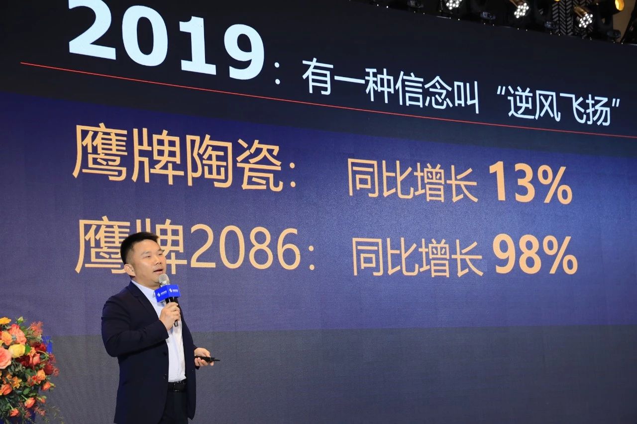 2019年各行各業都發出“活下去”的吶喊,陶瓷行業延續了2018年的下滑趨勢,中國建陶從黃金40年到進入下半場,而鷹牌集團實現“逆風飛揚”,鷹牌和鷹牌2086逆勢增長,集團管理費用大幅下降。這樣成果對于2019年的鷹牌集團來說猶如“忽如一夜春風來,千樹萬樹梨花開”。