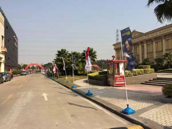 陶瓷總部道路一旁,刀旗飄飄,正在列道歡迎遠道而來的朋友和客人!