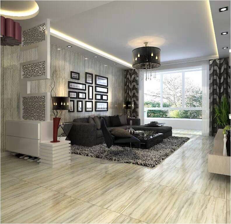 客廳地板采用29°柔光石材新品格蘭云天,墻壁采用29°柔光石材新品冬雪。