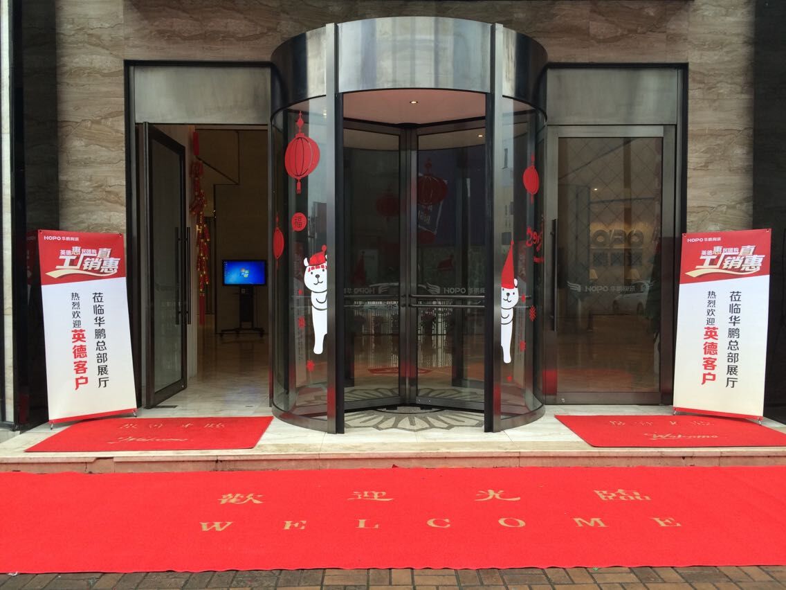 華鵬陶瓷總部門口打起的熱烈歡迎客戶的展架。