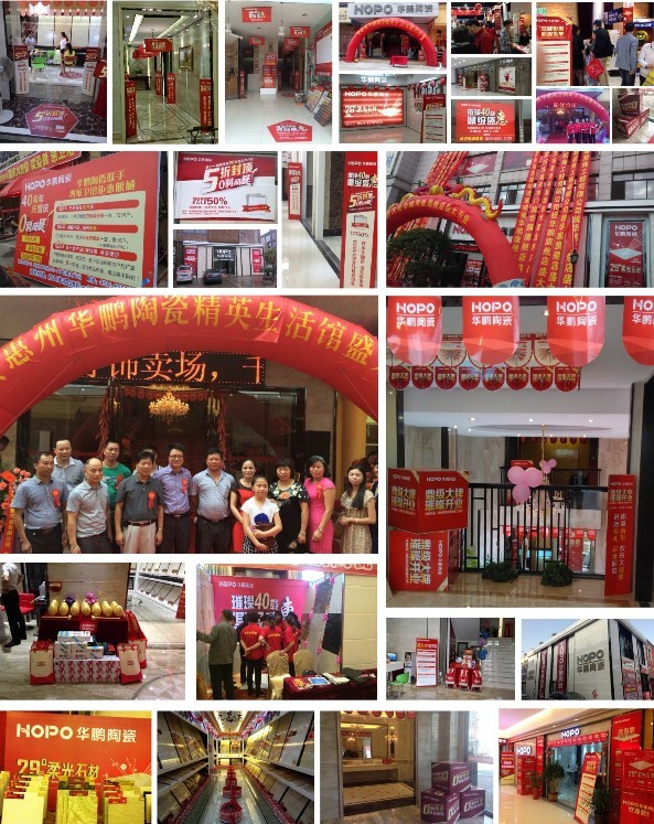 2014年,華鵬陶瓷百花綻放,全年完成了100家重點(diǎn)新旗艦店的統(tǒng)一開(kāi)業(yè),及100家老店面的重裝開(kāi)業(yè)。從上至黑龍江、北京下至海南等。華鵬的品牌活動(dòng)紅遍大江南北。