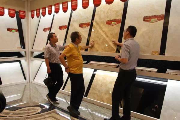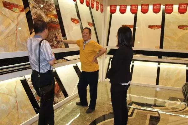 當張主任和藍總編參觀29度柔光石材系列產品,不禁為柔光石材的魅力所感染,張主任說:“當今柔光石材有別于其它拋光瓷磚,它看起來讓人更舒服,更自然,讓人心里覺得有種很安靜的感覺,你們華鵬的29度柔光石材獨樹一幟,別具匠心,有一種原創的自然美,我很喜歡。”