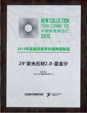 華鵬陶瓷29度柔光石材2.0喜獲2015年度最具美學價值陶瓷新品獎兩項殊榮!