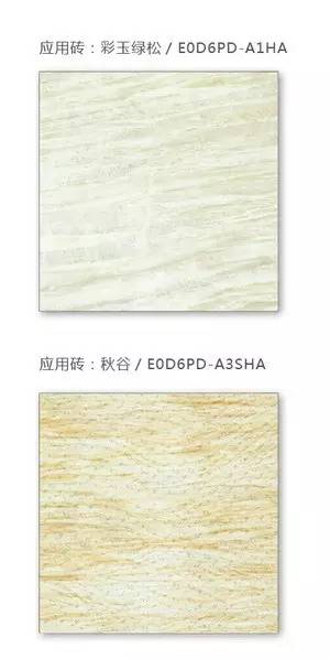 29度柔光石材2.0應用解說:該空間色調柔和,主磚與花磚的搭配應用整體空間呈現淡淡的金黃色,如同身臨稻田下感受黃昏的太陽,暖暖的金光迎面撲來,微風伴隨著稻穗的跳動,仿佛述說著秋收的到來。彩玉綠松青綠色的花紋讓廚房涂上一層自然的色彩。