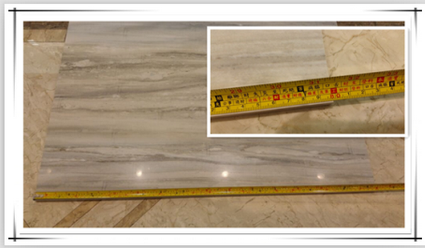 用卷尺測量單片瓷磚的長和寬,皆指向800mm,對角線長度為1130mm,誤差極小。說明瓷磚的規格準確,尺寸與標示無偏差。