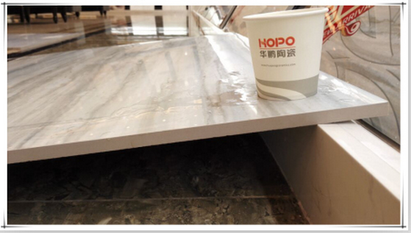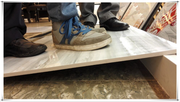 小編把這款瓷磚斜放,然后讓三名成年男性站在上面,瓷磚沒有出現變形或者開裂問題,證明其抗壓能力優秀,質量過硬有保證。