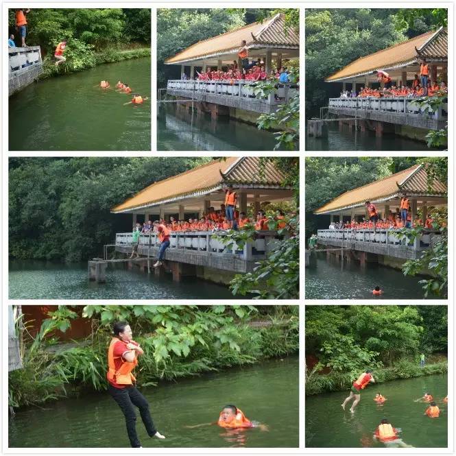 此項目魔鬼指數四星。每個人穿上救生衣,必須從2米高的橋頭跳到湖里,跳的同時大聲吶喊出自己今年的目標和愿望。