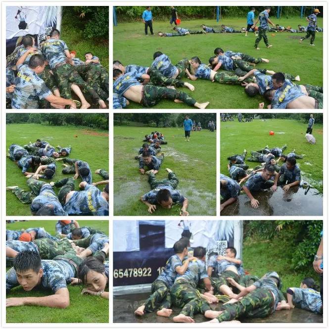 匍匐前行這個項目讓每一個人都痛苦難忘!在進行該項目時,好像是老天故意安排一樣,突如其來的暴雨把所有人都淋成個落湯雞!面對酷冷的陰雨天氣和高難度體力項目挑戰,沒有任何一名隊員臨陣退縮。