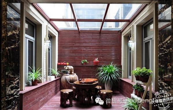 庭院景觀:樓道處的庭院景觀設(shè)計(jì),是設(shè)計(jì)師別出心裁的手筆,拓展了空間的可能性。原木桌椅、綠植,讓主人可以更好地?fù)肀ё匀弧⑾硎荜?yáng)光。
