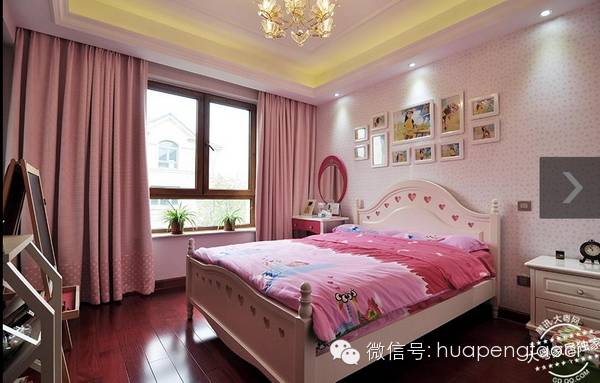 女孩房:設(shè)計(jì)師使用了小主人喜愛(ài)的粉色系,與白色混搭盡顯柔美風(fēng)情。