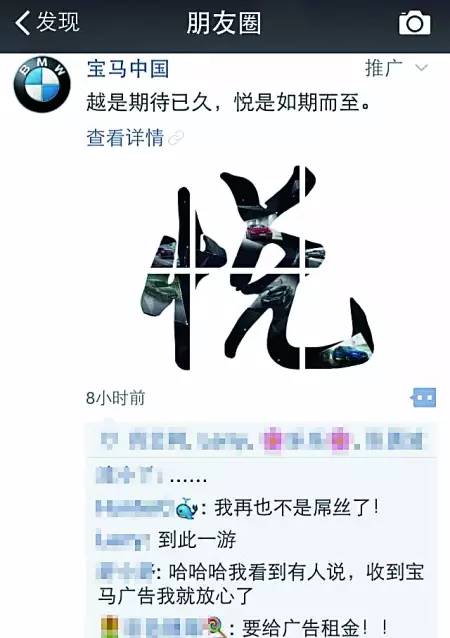 微信朋友圈廣告,最先開始試水的是寶馬公司。