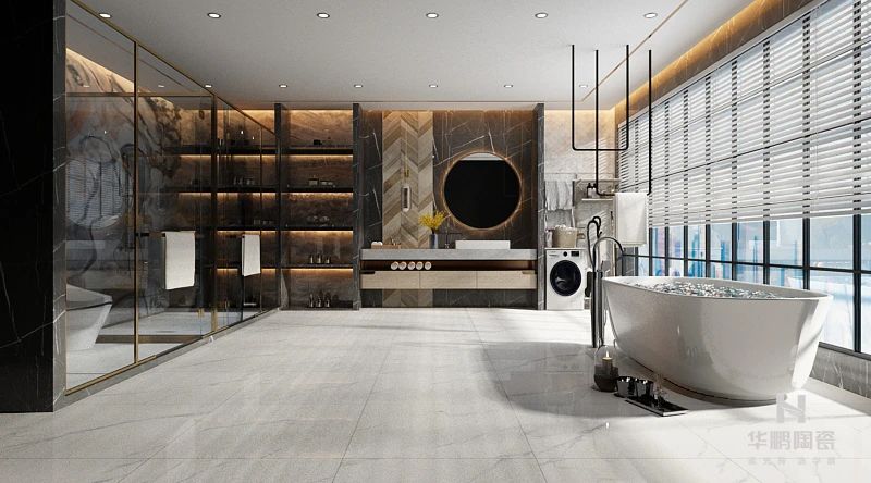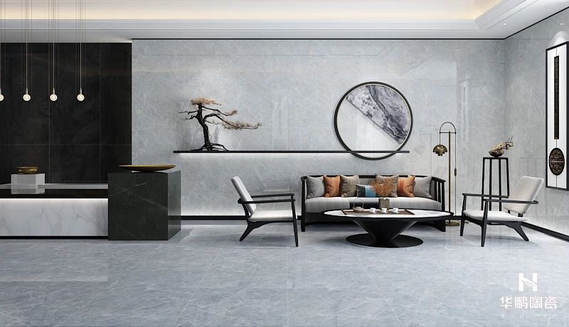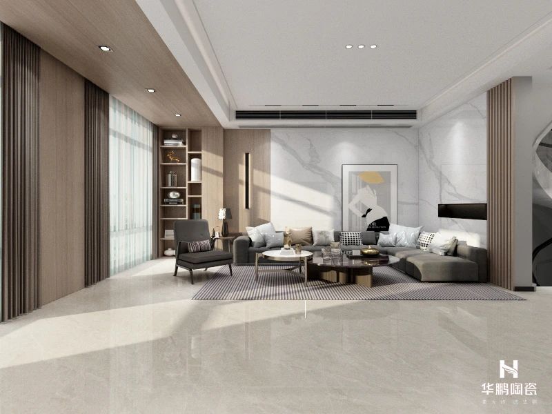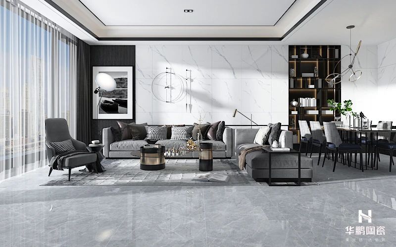 華鵬“通體大理石” 系列產品,萃取天然大理石的元素精華,以精密數控雙重精拋+釉面復合重疊技術完美復刻天然石材的紋理、色澤及質感。