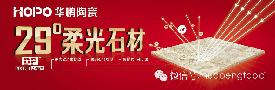2013年,華鵬陶瓷強力推出年銷量沖刺億元的重量級新品——行業首創“29°柔光石材”系列。