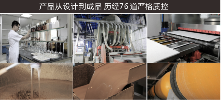 8809噸定制壓機;1229度高溫,60分鐘燒成周期;76道生產(chǎn)檢驗程序,確保華鵬產(chǎn)品高品質(zhì)。