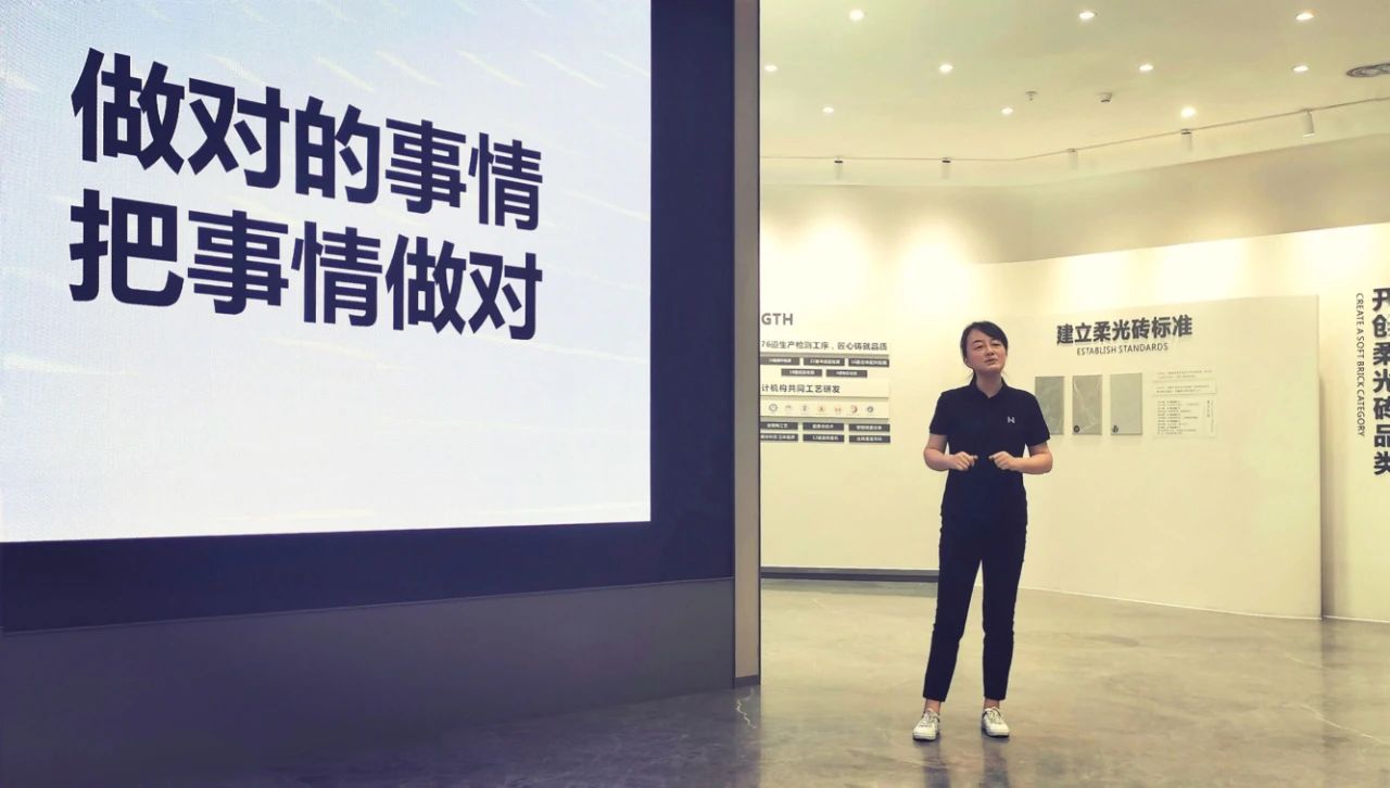 各版塊負責人總結之后,華鵬陶瓷副總經理閆蕾作了“做對的事情,把事情做對”的主題講話。閆總表示,在疫情危機下,我們需要做的就是,從戰略層面,做對的事情,從戰術層面,把事情做對,上下齊心,把握好基本面。