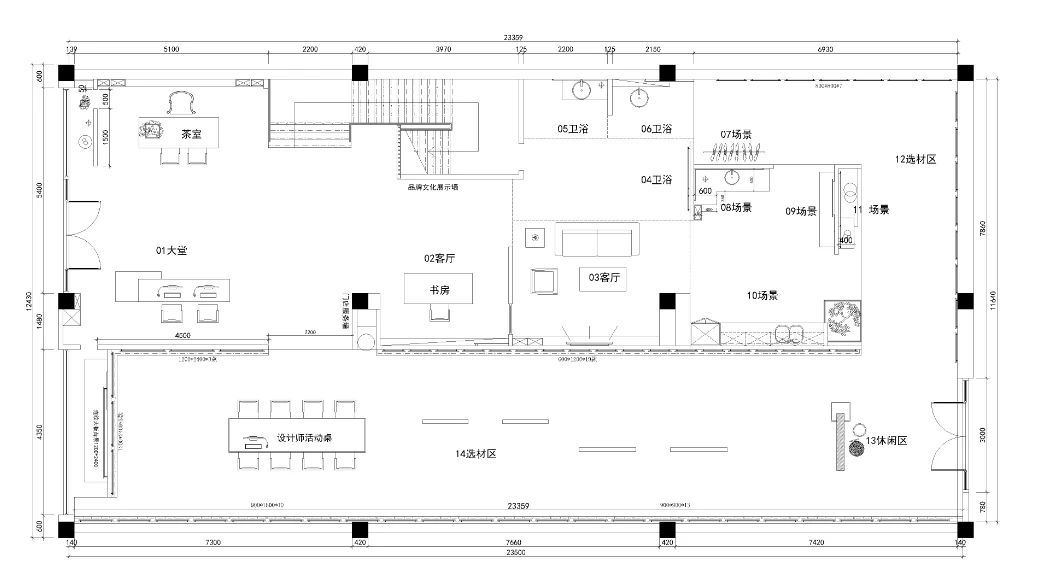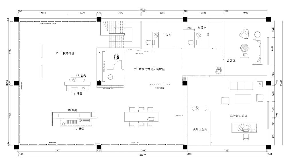 二層:工程選材區+工裝場景展示+小樣品展示墻