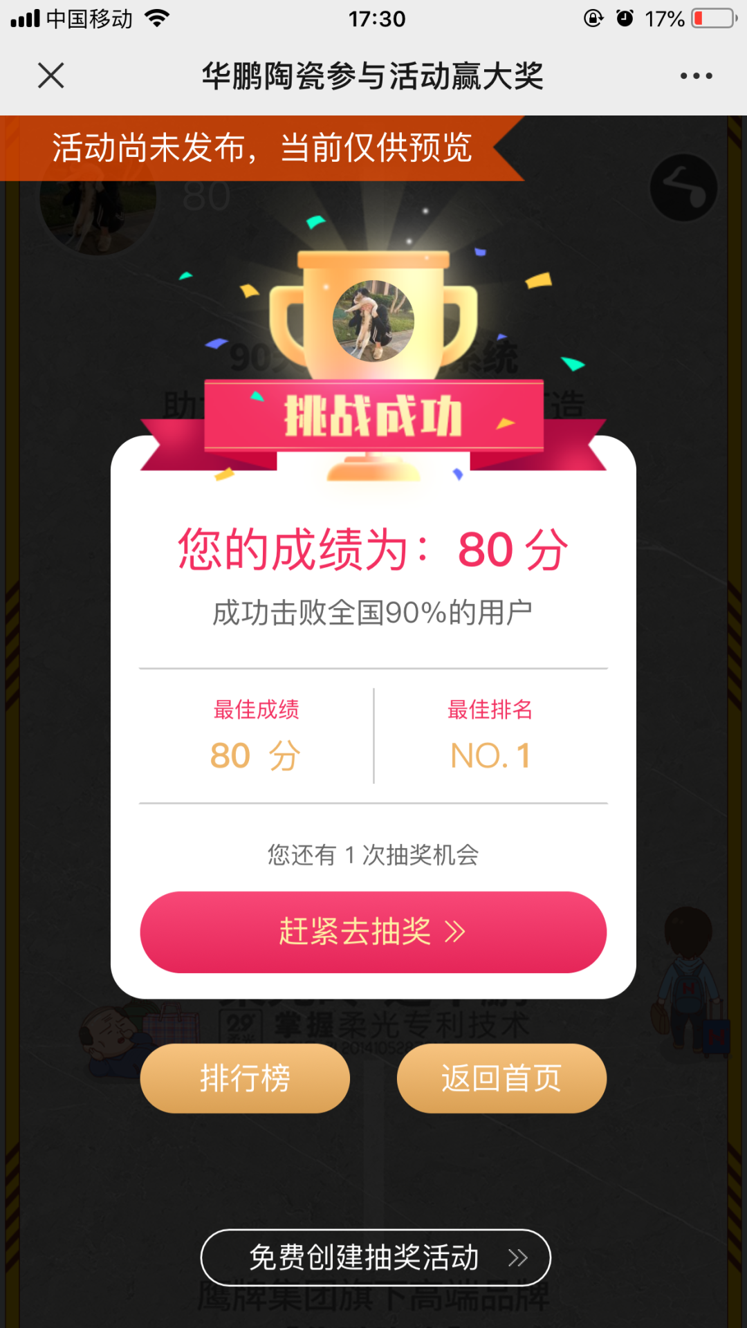 3參與活動分數達標后即可獲取抽獎,隨機獎勵,先到先得,拍完即止。