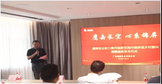 11月2日下午,由石灣鎮街道主辦的“鷹擊長空 心系錦屏” 廣東鷹牌實業有限公司助力貴州省黔東南州錦屏縣鄉村振興愛心捐贈瓷磚發車儀式,在鷹牌實業總部大樓舉行。石灣鎮街道黨工委副書記、辦事處主任陳樹凱,石灣鎮街道黨工委副書記侯樂安、廣東鷹牌實業有限公司董事長吳啟超,執行總裁林偉,財務總裁白秀芬以及石灣鎮街道農業農村辦公室的相關工作人員參加了本次儀式。