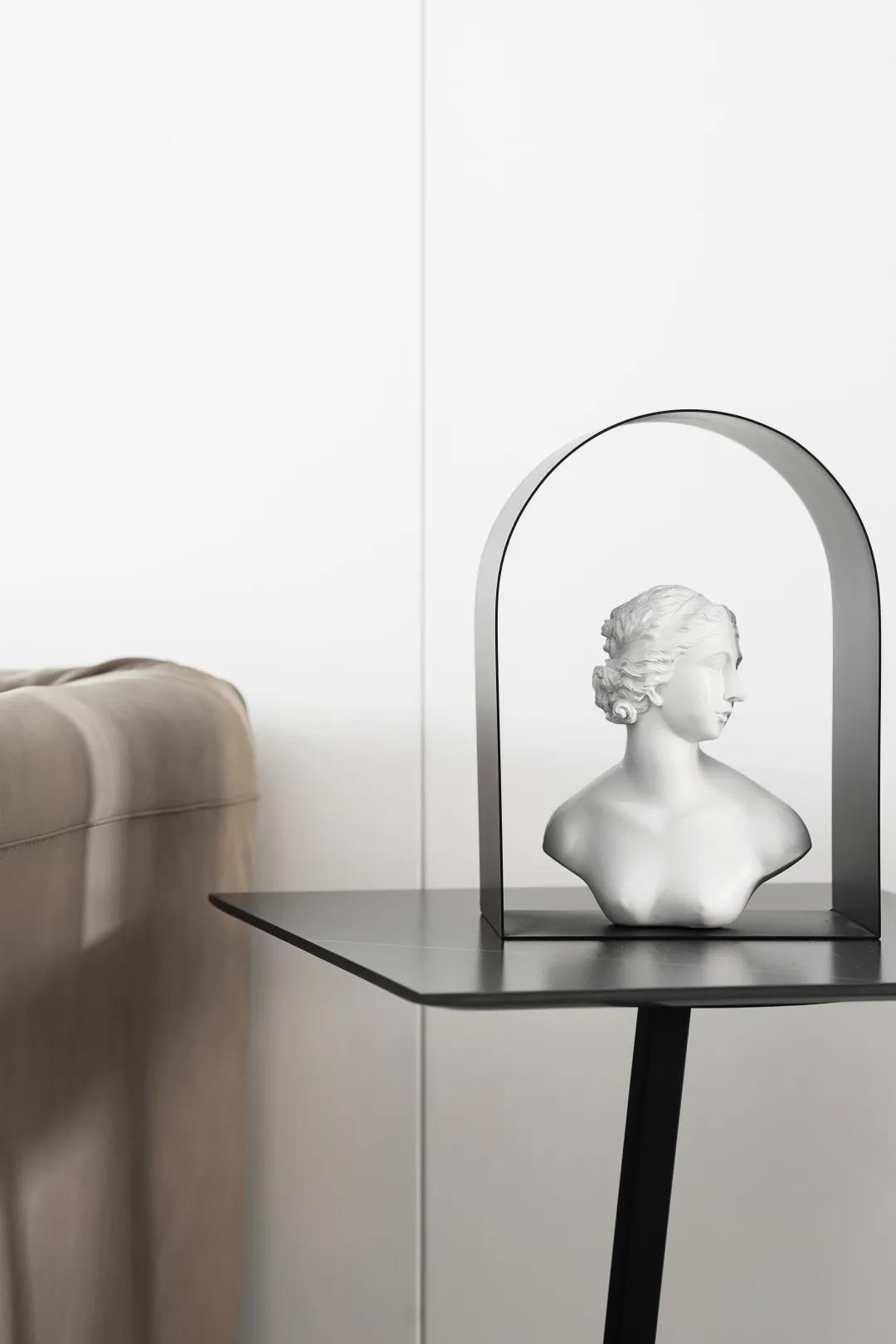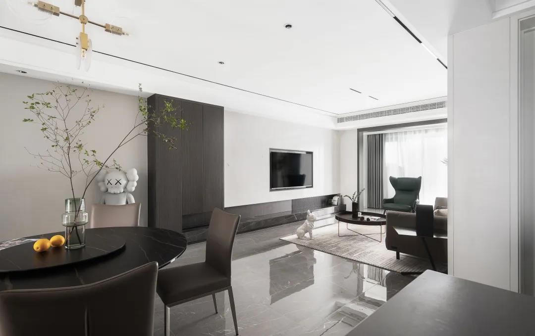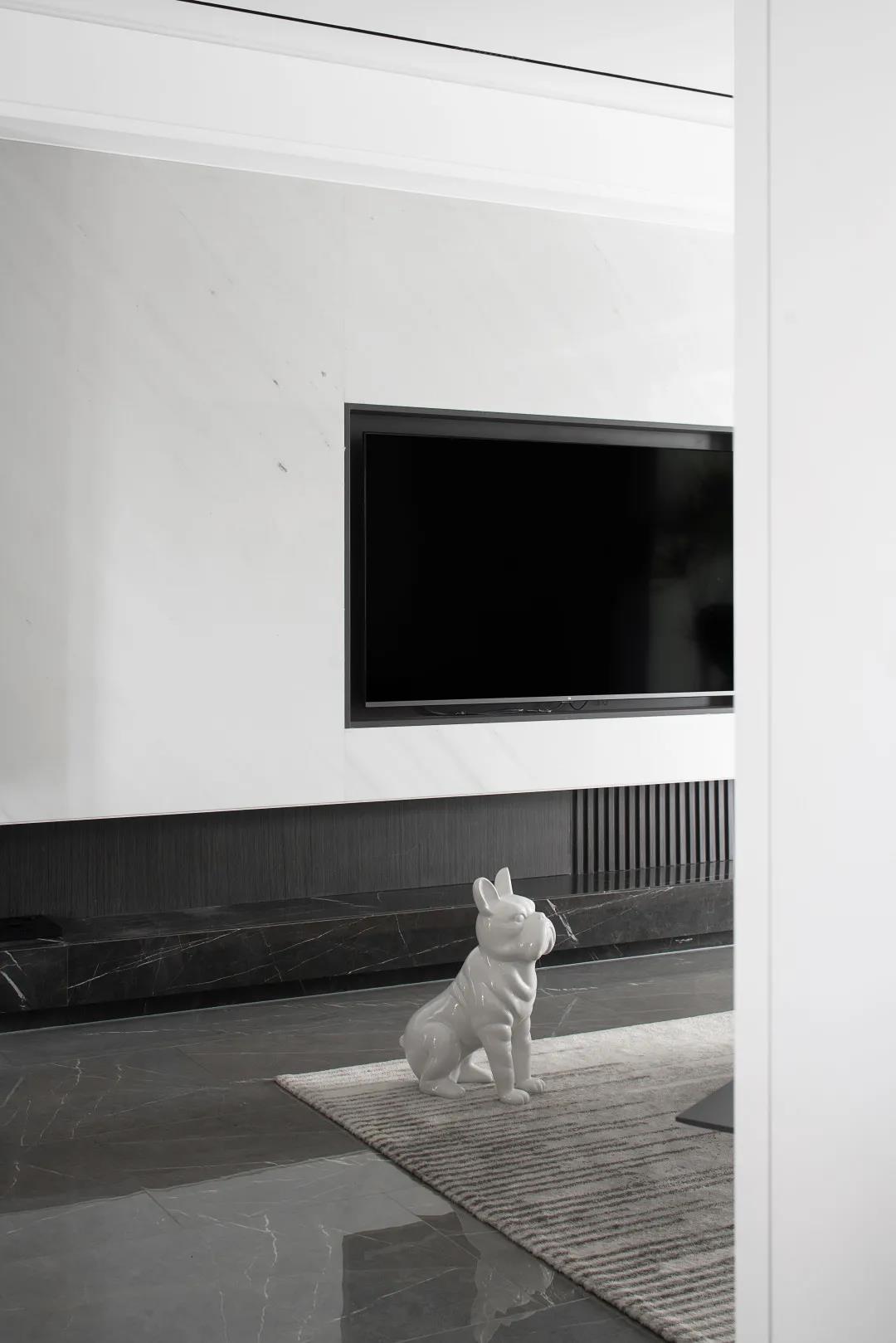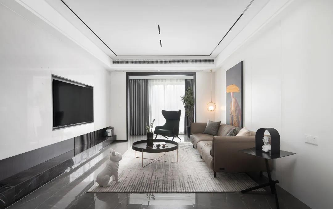 整個客廳以簡單的白、灰色為主,在細節(jié)上大面積的留白,家具和墻面也選用了簡約的配色,讓整體空間看上去即素雅又舒適。
