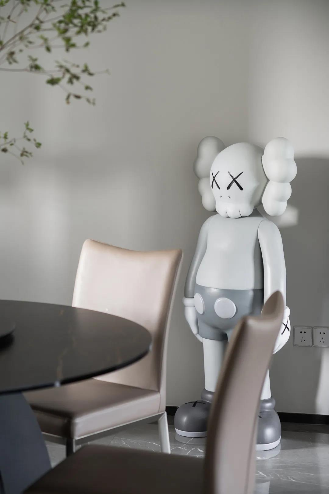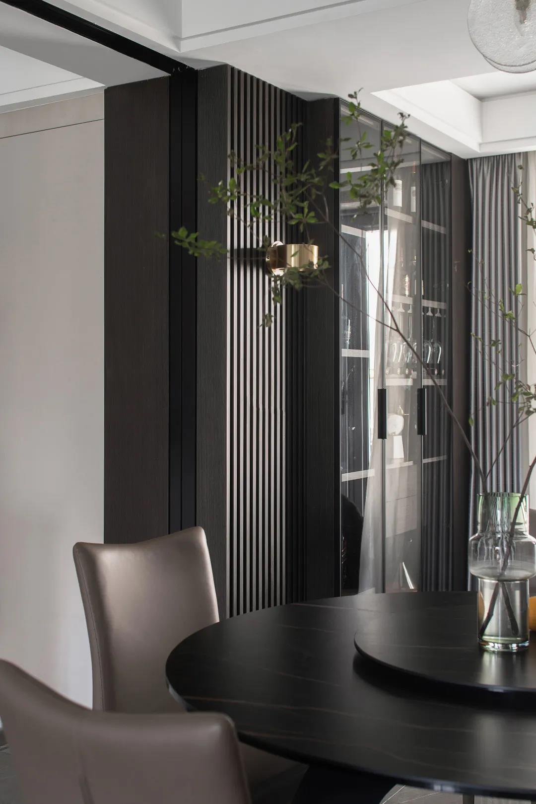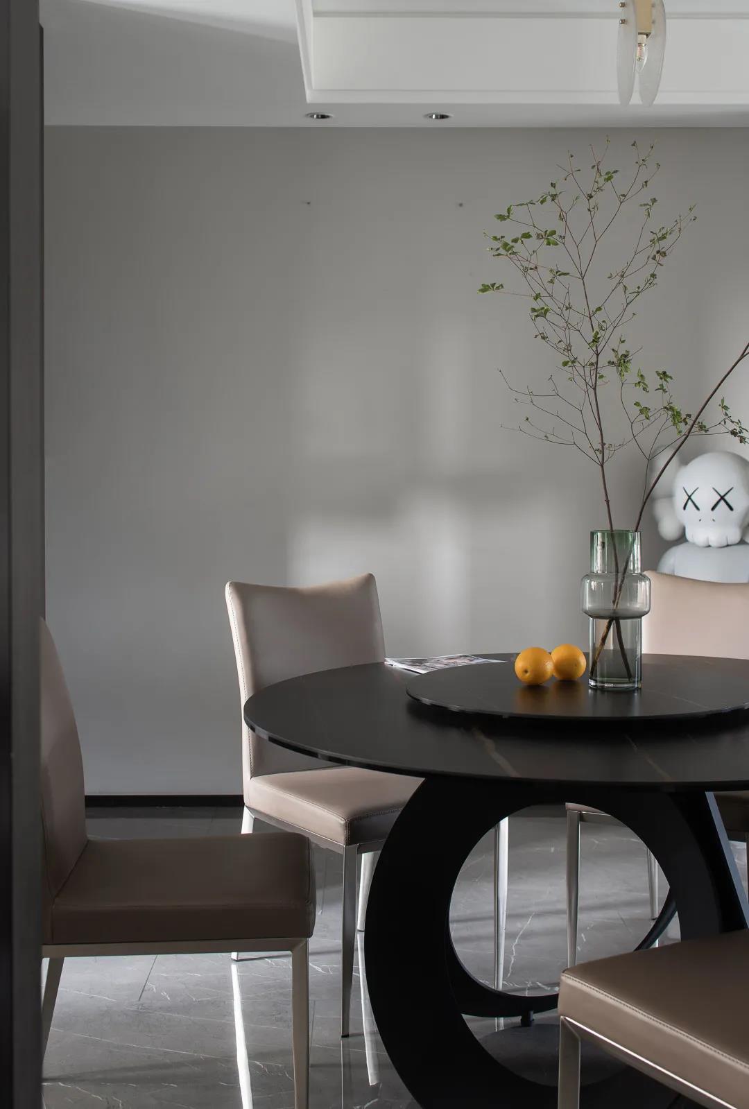 同時也保留了中國傳統(tǒng)的圓形餐桌,讓業(yè)主的餐飲可以中西結(jié)合,餐桌上方的裝飾綠植,加上一些藝術(shù)擺件,在視覺上烘托出一種溫馨靜謐的氛圍。