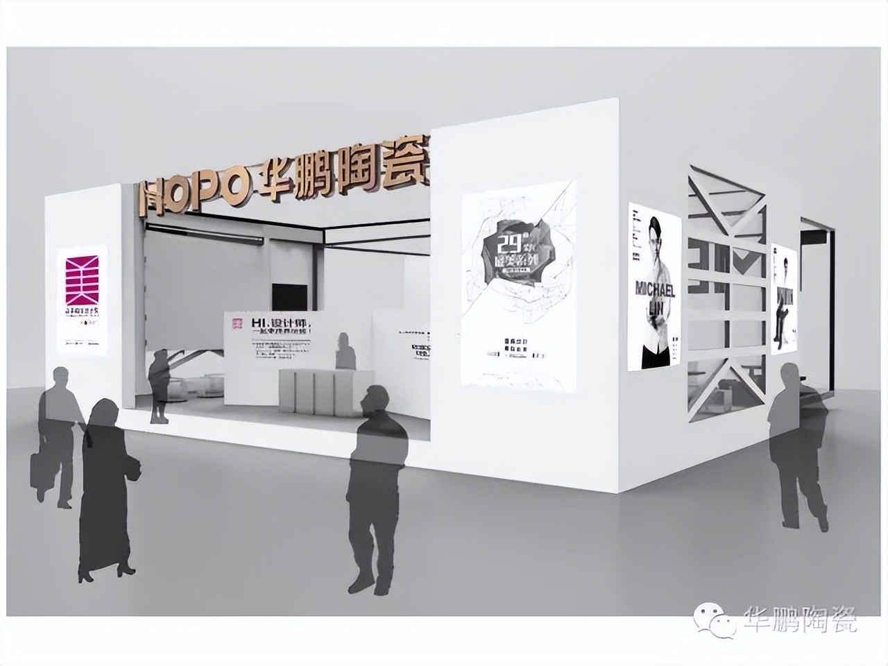 2018年,華鵬以“柔”為設計主旨亮相廣州設計周,從品牌理念出發,以品牌形象就行輸出,將“柔”的意境展現淋漓盡致,弧形結構將空間很好的劃分為三大展區,設計師打破固有的元素組合,把產品與品牌文化、空間進行結合,以華鵬柔光磚打造的芭蕾舞者造型平衡瓷磚的厚重感,從而賦予空間更多靈動之美,讓瓷磚產品在設計中呈現質感之態。