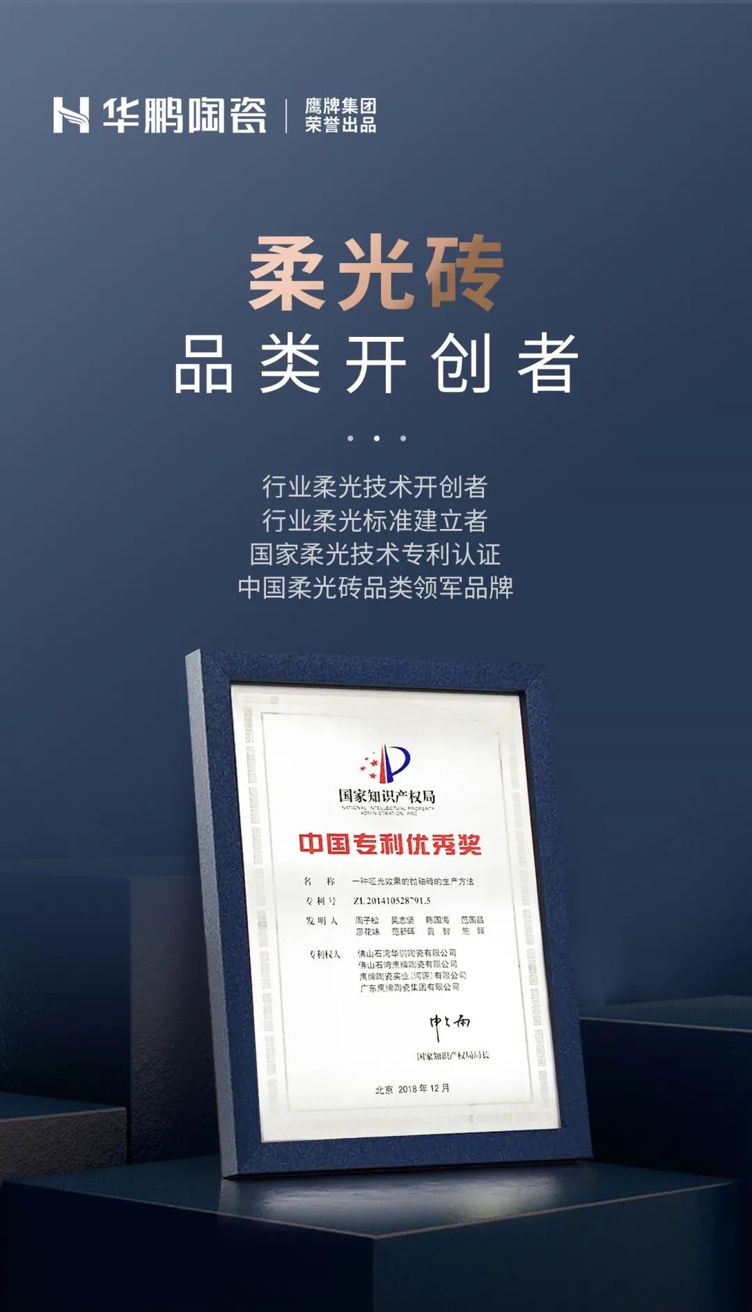 華鵬作為天安新材與鷹牌集團傾力打造的柔光品牌,擁有三大現代化生產基地,多條高科技生產線,雄厚的綜合實力與突出的競爭優勢明顯,保持穩健長足發展。一直致力于柔光磚的深入研發,獲得國家“發明專利證書”,并先后通過ISO體系認證及綠色產品認證,在生產、研發、制造等各個環節領先行業,均達到了國際水準,為華鵬品牌的快速發展打下了堅實的產能基礎。