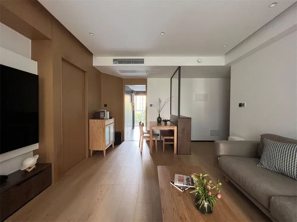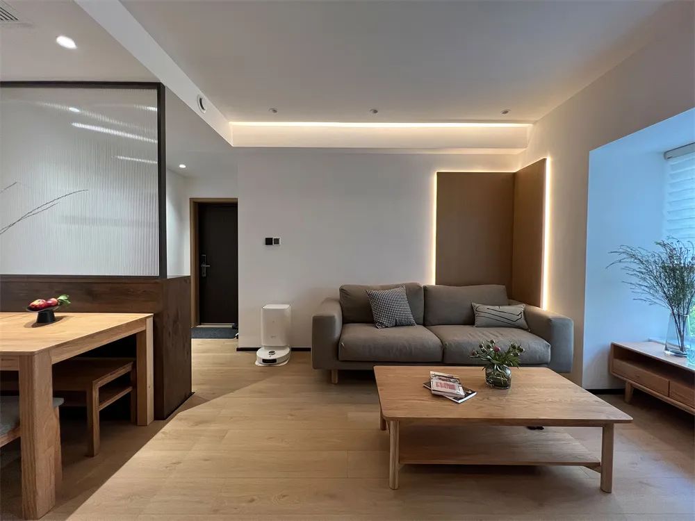 整體設計采用極致簡約的原木風,溫馨而簡單,它沉浸在靜止和平靜中,他說,他們在設計創造出一個有該有的光,有該有的溫度的空間,將家“原本的樣子”交予屋主。