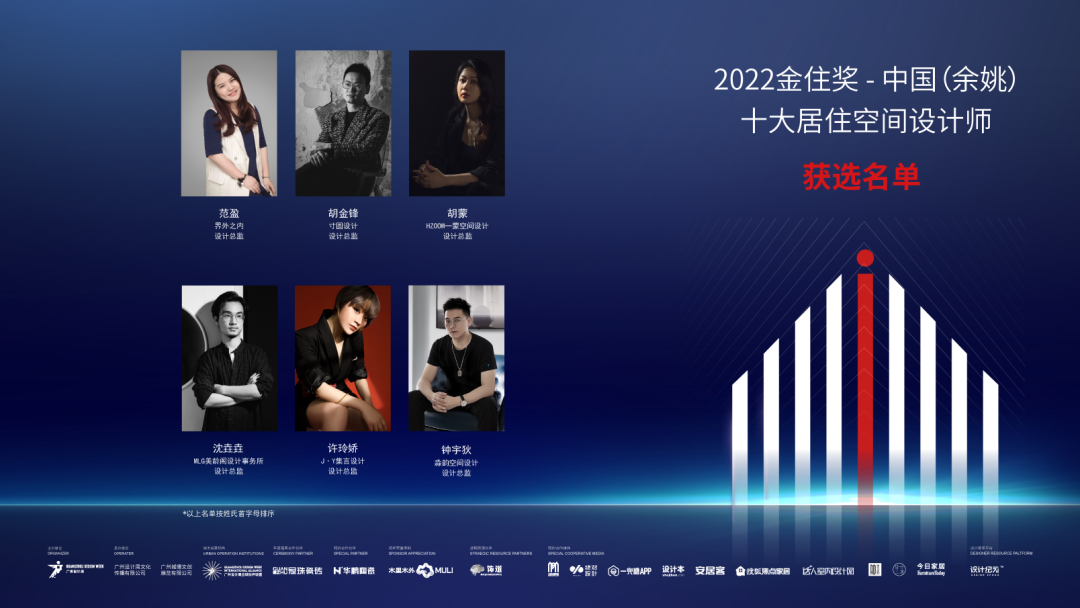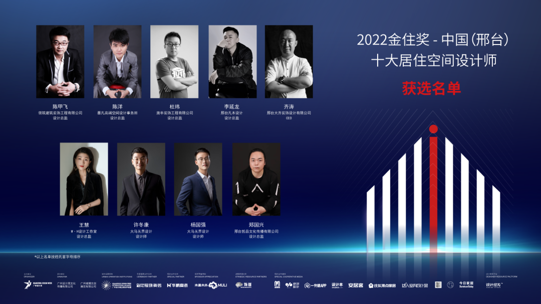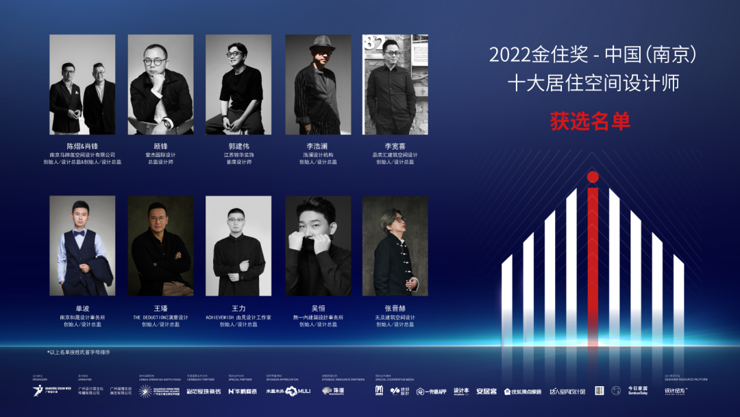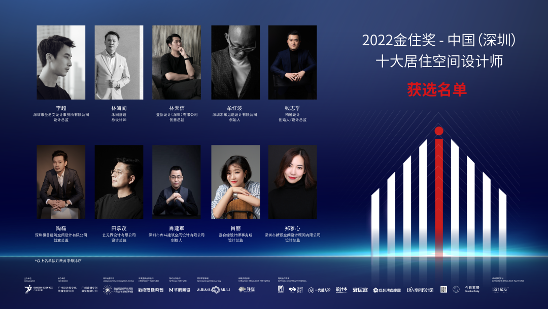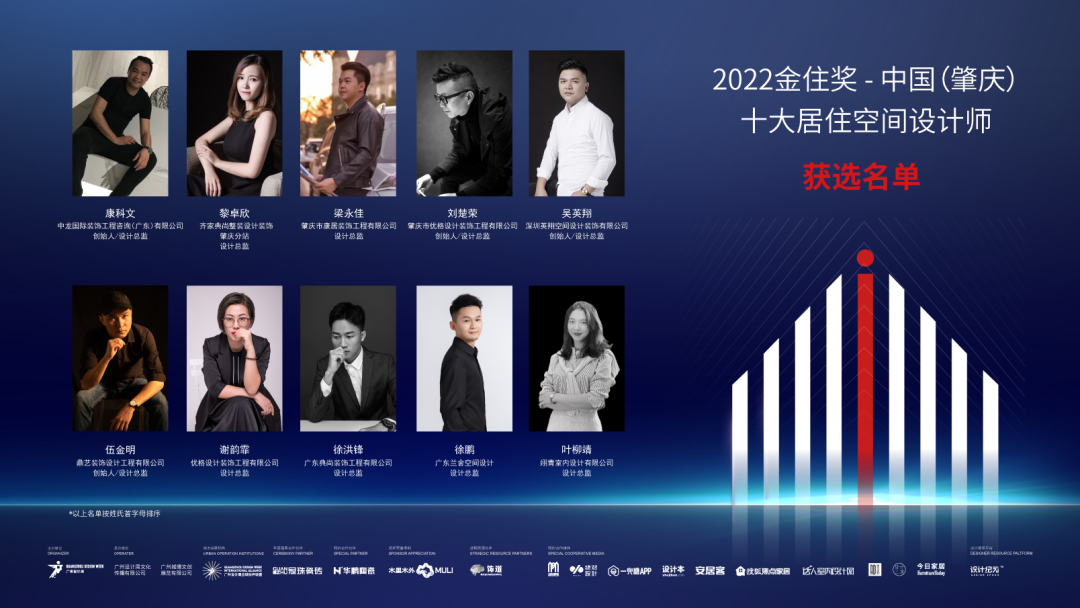 恭喜以上優(yōu)秀設(shè)計(jì)師榮獲“2022金住獎(jiǎng)-中國(guó)(城市)十大居住空間設(shè)計(jì)師”,并獲得最終角逐“2022金住獎(jiǎng)-中國(guó)百杰居住空間設(shè)計(jì)師”的資格!同時(shí)各位獲獎(jiǎng)設(shè)計(jì)師也將參加于廣州設(shè)計(jì)周同期舉辦的『2022金住獎(jiǎng)-中國(guó)(城市)十大居住空間設(shè)計(jì)師』頒獎(jiǎng)典禮!“2022金住獎(jiǎng)-中國(guó)(城市)十大居住空間設(shè)計(jì)師”獲選名單將陸續(xù)發(fā)布,敬請(qǐng)期待!