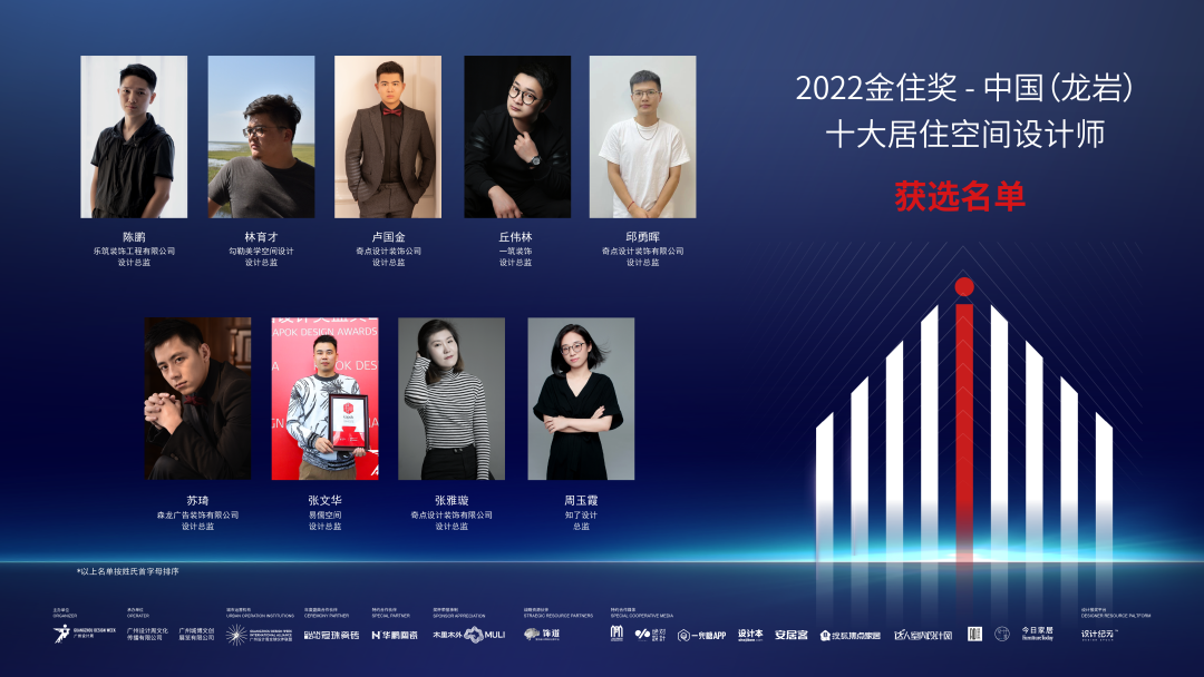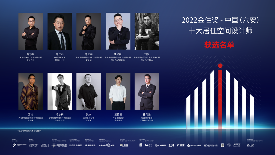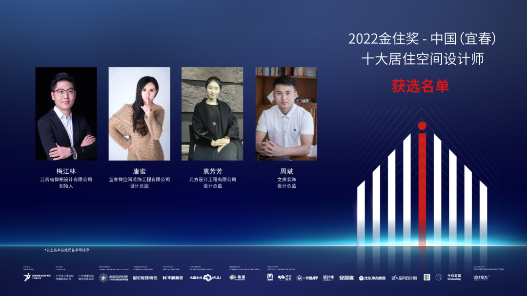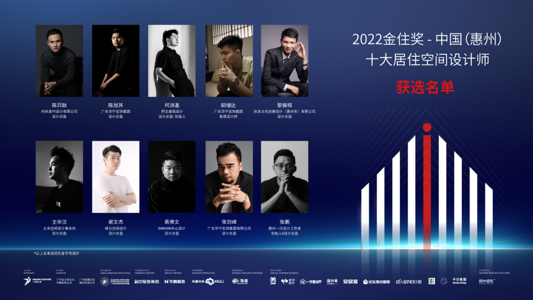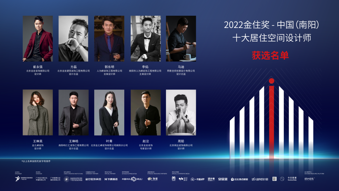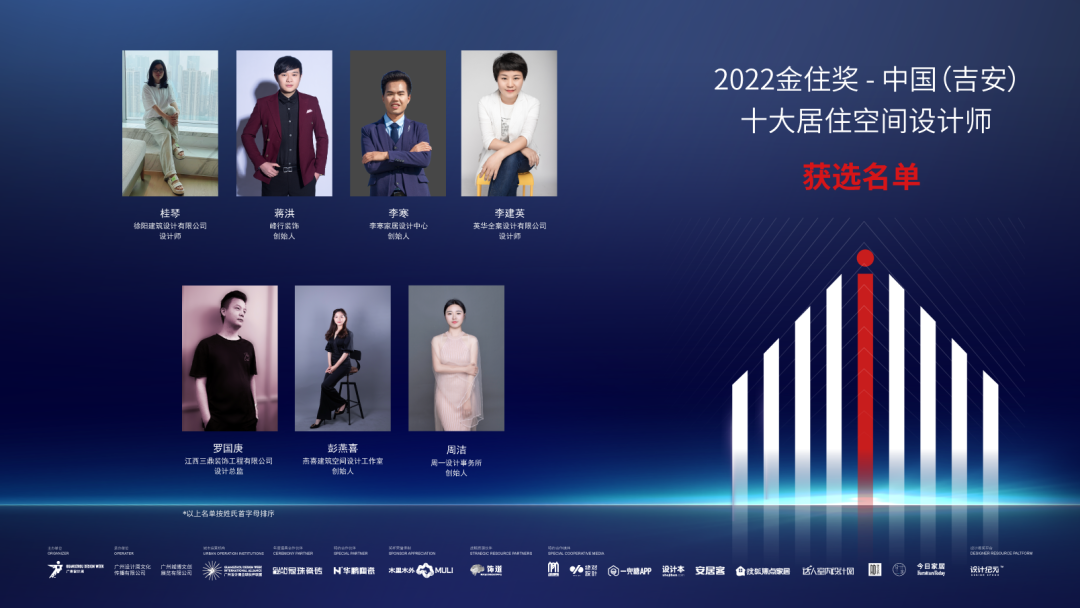 恭喜以上優(yōu)秀設(shè)計(jì)師榮獲“2022金住獎(jiǎng)-中國(guó)(城市)十大居住空間設(shè)計(jì)師”,并獲得最終角逐“2022金住獎(jiǎng)-中國(guó)百杰居住空間設(shè)計(jì)師”的資格!同時(shí)各位獲獎(jiǎng)設(shè)計(jì)師也將參加于廣州設(shè)計(jì)周同期舉辦的『2022金住獎(jiǎng)-中國(guó)(城市)十大居住空間設(shè)計(jì)師』頒獎(jiǎng)典禮!“2022金住獎(jiǎng)-中國(guó)(城市)十大居住空間設(shè)計(jì)師”獲選名單將陸續(xù)發(fā)布,敬請(qǐng)期待!