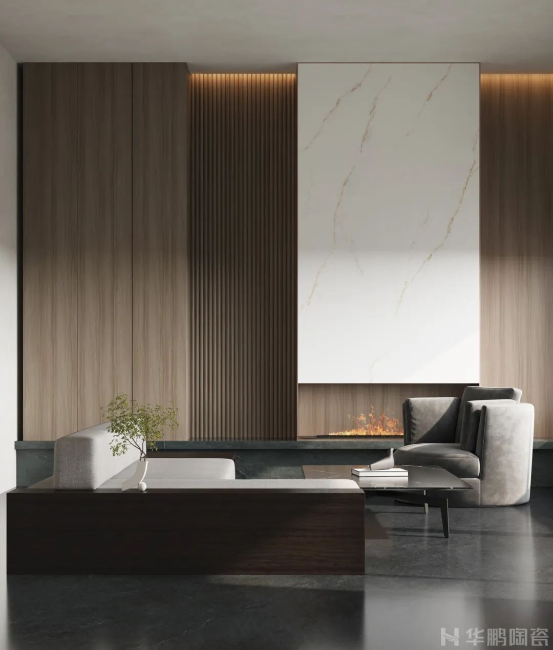 深邃穩(wěn)重的深灰調(diào),將自然的神秘刻畫得淋漓盡致,讓家居空間仿佛被賦予了生命,充滿了自然的韻律與節(jié)奏。