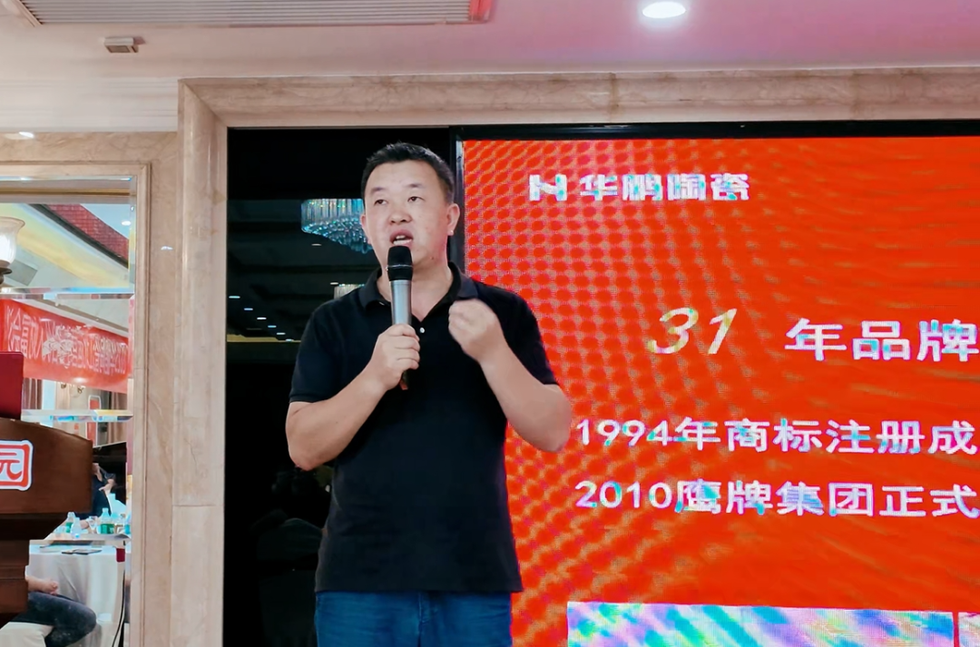 華鵬陶瓷淄博運營中心總經理徐學超在會議上對蒞臨現場的經銷商表示熱烈的歡迎與感謝,并表示,華鵬陶瓷始終以“做有價值的陶瓷產品,做有溫度的合作伙伴”為初心,回望淄博運營中心的發展,從最初的雛形搭建,到如今淄博運營中心總部扎根淄博,現已經基本完成了資源集聚、產品集成和市場集成的推進;同時華鵬陶瓷淄博中心倉投入使用,大大減輕了合作伙伴在倉儲方面的壓力,幫助經銷商實現小投入、大產出的盈利模式。未來,總部與淄博運營中心將結合江北市場實際情況持續就產品研發、渠道運營賦能、宣傳推廣、培訓體系打造等進行升級提升,持續為各位合作伙伴提供高性價比產品、高增長盈利模式。打造出淄博市場的“華鵬生態圈”—讓每一位選擇華鵬的伙伴,都能感受到“背靠大樹”的安心,也能收獲“共同成長”的紅利。