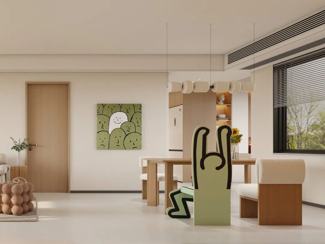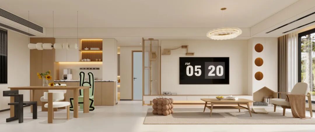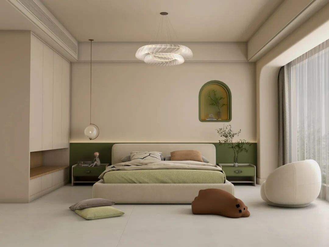 家居奶油風以淺暖色調為主,如奶白、淺杏,搭配暖調的綠色系點綴。拒絕冷硬棱角。搭配軟糯軟裝與柔和光影,整體像裹著軟乎乎的質感,不張揚卻滿是治愈感,讓家顯松弛又溫馨。