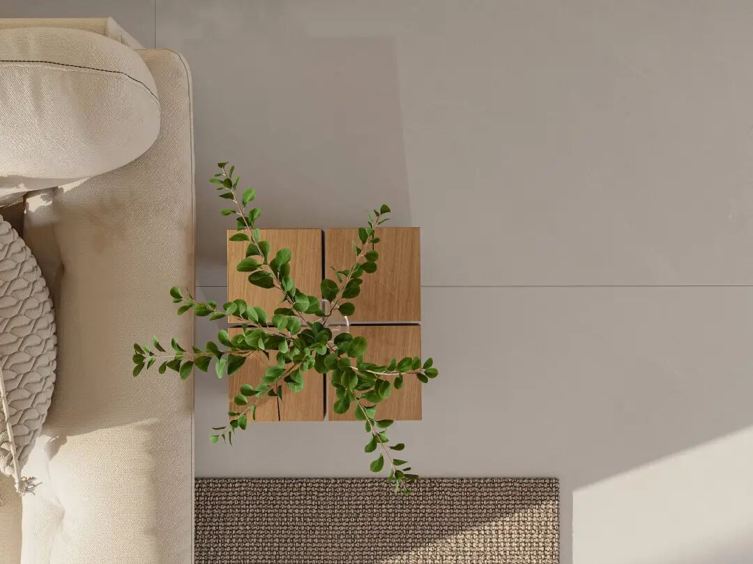 Creamy tiles pair well with soft sofas and light furniture. Natural light reflects gently, creating a cozy, tidy space.