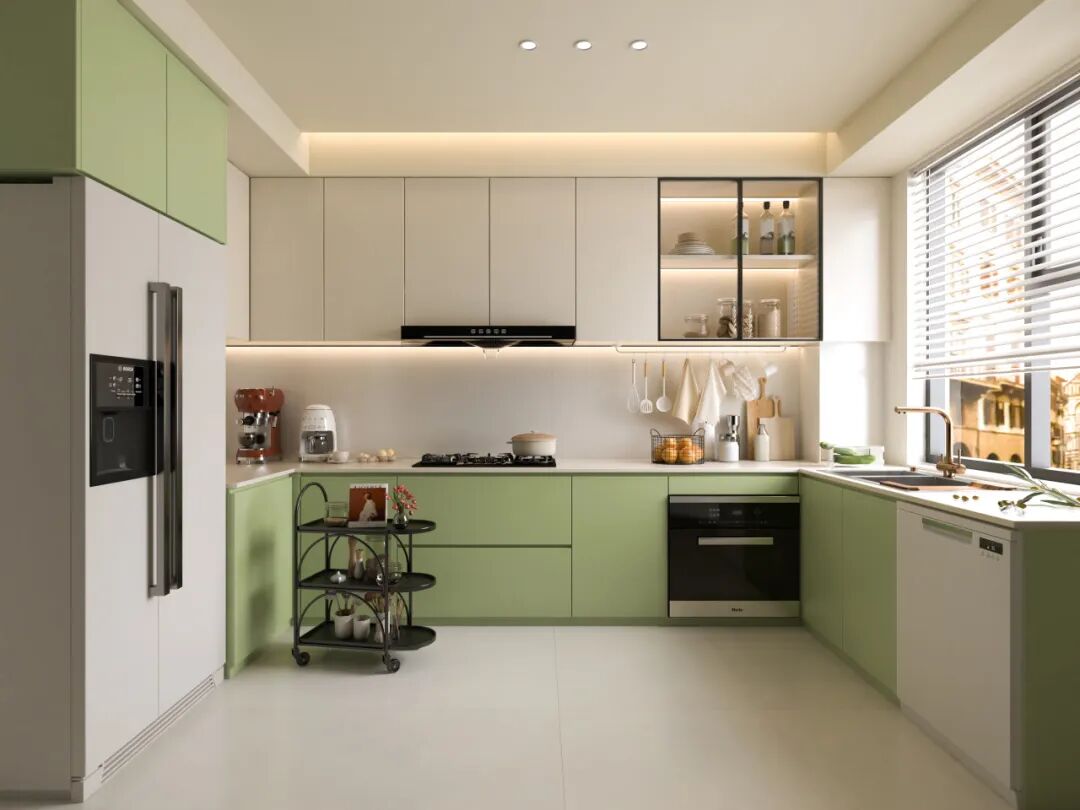 Kitchen: Durable and sleek, it handles grease while keeping the look bright and stylish..