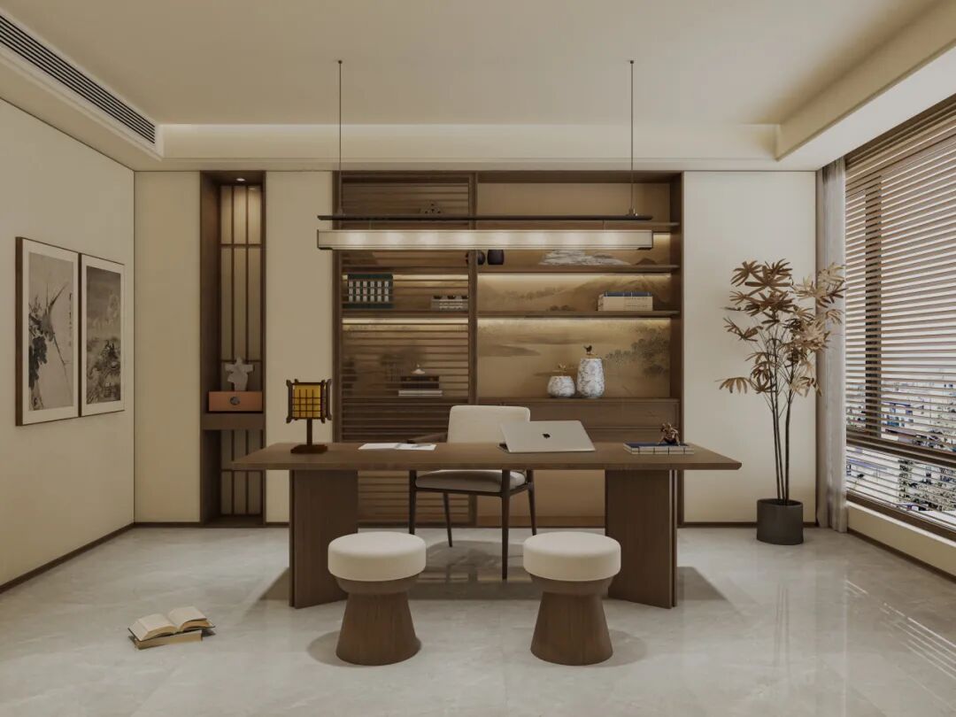 書房需靜謐氛圍,地面延續洛可可淺灰地磚保持風格統一,天然石質感助人心緒沉靜,適配閱讀辦公需求。